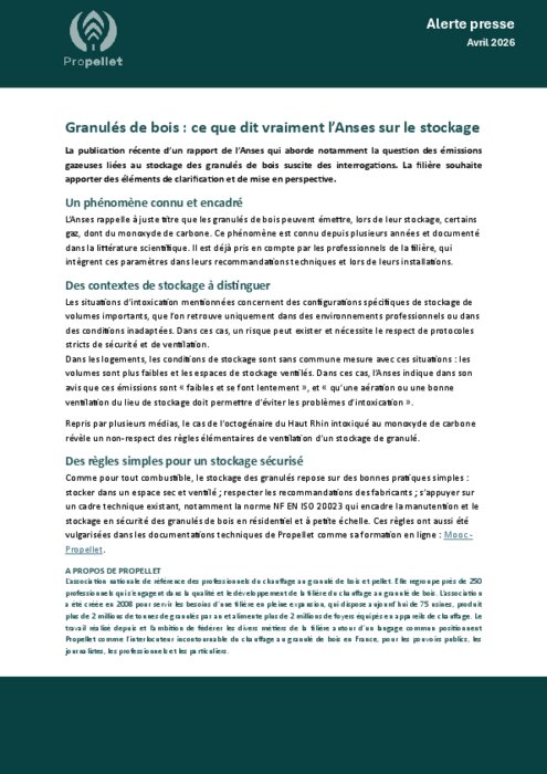 La publication récente du rapport de l'Anses qui aborde notamment la question des émissions gazeuses liées au stockage des granulés de bois a suscité de nombreuses reprises médiatiques… parfois accompagnées de raccourcis ou d’interprétations inexactes.