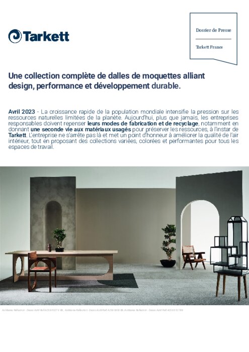Industriels 17 avril 2023 - 14:35 Pour ses collections de dalles de moquette, Tarkett a souhaité développer des solutions de sol souples alliant design, fonctionnalité et développement durable. PDF (6 Mo) Télécharger