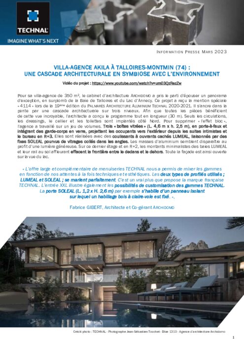 d’exception, en surplomb de la Baie de Talloires et du Lac d’Annecy. Ce projet a reçu la mention spéciale