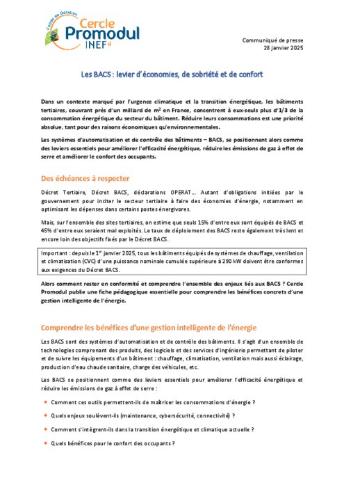 Dans un contexte marqué par l’urgence climatique et la transition énergétique, les bâtiments tertiaires, couvrant près d’un milliard de m² en France, concentrent à eux-seuls plus d’1/3 de la consommation énergétique du secteur du bâtiment. Réduire leurs consommations est une priorité absolue, tant pour des raisons économiques qu’environnementales. Les systèmes d’automatisation et de contrôle des bâtiments – BACS, se positionnent alors comme des leviers essentiels pour améliorer l’efficacité énergétique, réduire les émissions de gaz à effet de serre et améliorer le confort des occupants.