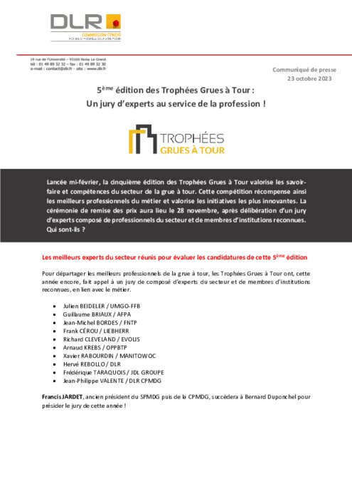 Lancée mi-février, la cinquième édition des Trophées Grues à Tour valorise les savoir-faire et compétences du secteur de la grue à tour. La cérémonie de remise des prix aura lieu le 28 novembre, après délibération d’un jury d’experts composé de professionnels du secteur et de membres d’institutions reconnues. Qui sont-ils ?