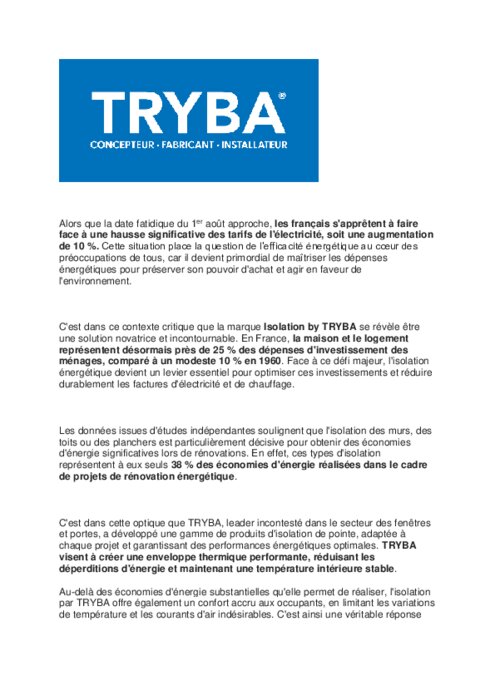 TRYBA face à la hausse des tarifs de l’électricité du 1er août