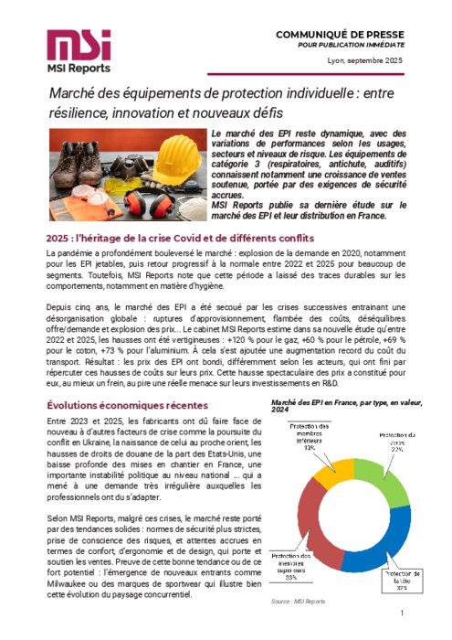 La pandémie a profondément bouleversé le marché : explosion de la demande en 2020, notamment pour les EPI jetables, puis retour progressif à la normale entre 2022 et 2025 pour beaucoup de segments. Toutefois, MSI Reports note que cette période a laissé des traces durables sur les comportements, notamment en matière d’hygiène.