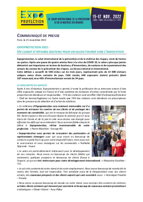 Expoprotection, le salon international de la prévention et de la maîtrise des risques, vient de fermer ses portes. Après une pause de quatre années liées à la crise du COVID 19, le salon a plus que jamais démontré son importance en termes de business, d’innovations, de contenu et de rayonnement des acteurs du secteur de la prévention des risques, au niveau national et international. Cette édition a accueilli 16 500 visites sur les trois jours, représentant près de 14 000 visiteurs uniques.