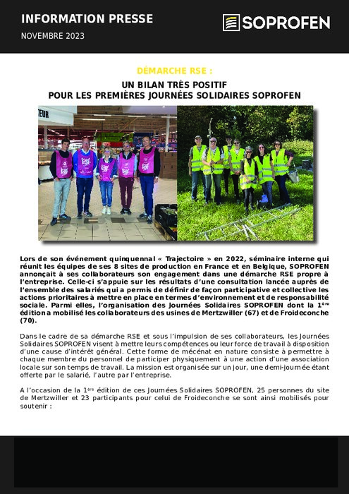 Un bilan très positif pour les 1ères Journées Solidaires SOPROFEN