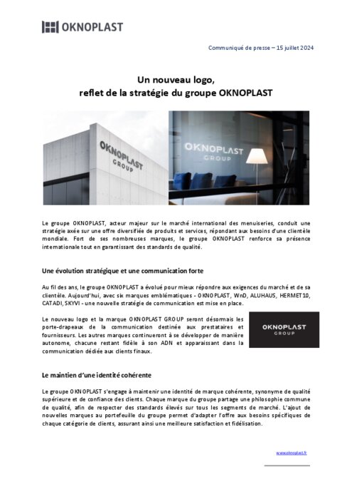 Un nouveau logo, reflet de la stratégie du groupe Oknoplast