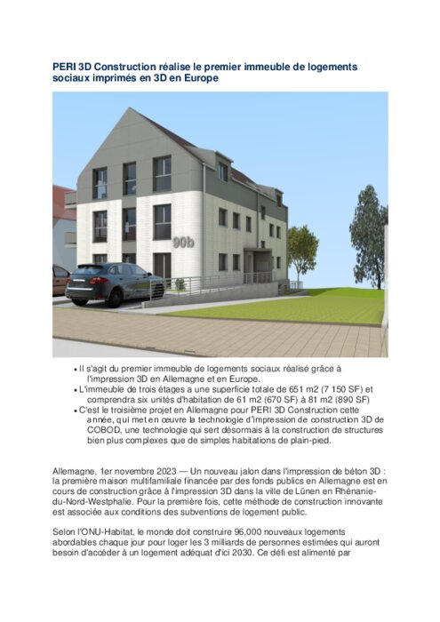 C'est le troisième projet en Allemagne pour Peri 3D Construction cette année, qui met en œuvre la technologie d'impression de construction 3D de Cobod, une technologie qui sert désormais à la construction de structures bien plus complexes que de simples habitations de plain-pied.