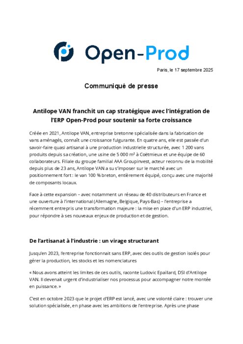 Créée en 2021, Antilope VAN, entreprise bretonne spécialisée dans la fabrication de vans aménagés, connaît une croissance fulgurante. En quatre ans, elle est passée d’un savoir-faire quasi artisanal à une production industrielle structurée, avec 1 200 vans produits depuis sa création, une usine de 5 000 m² à Coëtmieux et une équipe de 60 collaborateurs. Filiale du groupe familial AAA Groupinvest, acteur reconnu de la mobilité depuis plus de 23 ans, Antilope VAN a su s’imposer sur le marché avec un positionnement fort : le van 100 % breton, entièrement équipé, conçu avec une majorité de composants locaux.