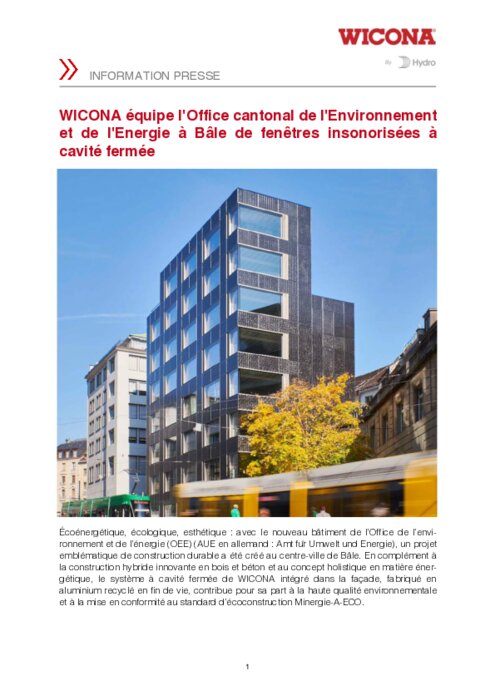 En complément à la construction hybride innovante en bois et béton et au concept holistique en matière énergétique, le système à cavité fermée de WICONA intégré dans la façade, fabriqué en aluminium recyclé en fin de vie, contribue pour sa part à la haute qualité environnementale et à la mise en conformité au standard d’écoconstruction Minergie-A-ECO.