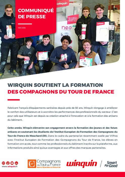 Cette année, Wirquin démontre son engagement envers la formation des jeunes et des futurs artisans en soutenant les étudiants de l’Institut Européen de Formation des Compagnons du Tour de France de Mouchard (39).