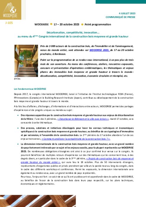 Près de 3 000 acteurs de la construction bois, de l’immobilier et de l’aménagement, venus du monde entier, sont attendus sur Woodrise 2023, du 17 au 20 octobre prochains, à Bordeaux. Point sur la programmation de ce rendez-vous international, à un peu plus de trois mois de son ouverture