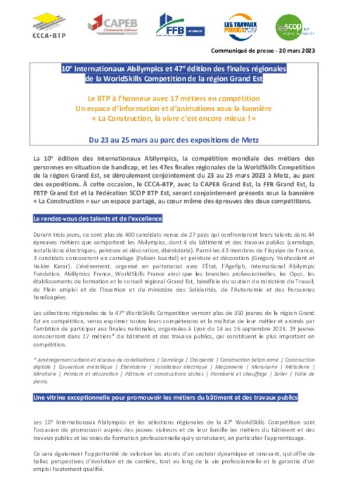 des expositions. À cette occasion, le CCCA-BTP, avec la CAPEB Grand Est, la FFB Grand Est, la