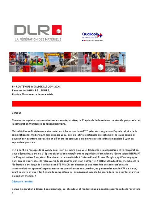 Médaillé d'or en Maintenance des matériels à l'occasion des 47èmes sélections régionales Pays de la Loire de la compétition des métiers à Angers en mars 2023, puis de la finale nationale en septembre, le jeune candidat poursuit son aventure WorldSkills et défendra les couleurs de la France lors de la finale mondiale à Lyon en septembre prochain.