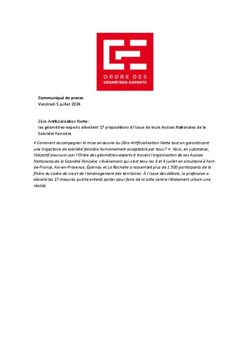 « Comment accompagner la mise en œuvre du Zéro Artificialisation Nette tout en garantissant une trajectoire de sobriété foncière humainement acceptable par tous ? ». Voici, en substance, l’objectif poursuivi par l’Ordre des géomètres-experts à travers l’organisation de ses Assises Nationales de la Sobriété Foncière. L’événement qui s’est tenu les 3 et 4 juillet en simultané à Fort-de-France, Aix-en-Provence, Épernay et La Rochelle a rassemblé plus de 1 500 participants de la filière du cadre de vie et de l’aménagement des territoires. À l’issue des débats, la profession a dévoilé les 17 mesures qu’elle entend porter pour faire de la lutte contre l’étalement urbain une réalité.