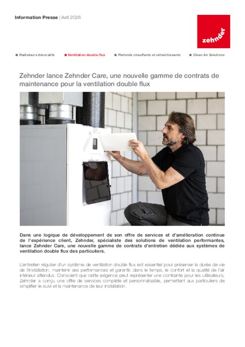 Dans une logique de développement de son offre de services et d’amélioration continue de l’expérience client, Zehnder, spécialiste des solutions de ventilation performantes, lance Zehnder Care, une nouvelle gamme de contrats d’entretien dédiée aux systèmes de ventilation double flux des particuliers.