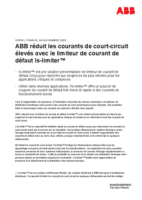 Face à l'augmentation de puissance, à l'imbrication croissante des réseaux électriques, les tableaux de distributions électriques sont soumis à des courants de court-circuit toujours plus important. Une protection fiable et économique contre ces courants de surtension doit être ainsi assurée. ABB y répond avec le limiteur de courant de défaut Is-limiter, une solution personnalisée qui répond aux exigences les plus élevées pour les applications critiques et complexes en réduisant le seuil des courants de court-circuit.