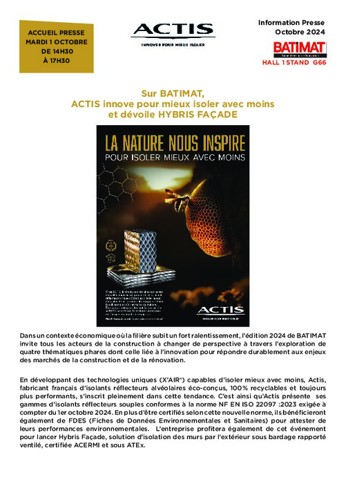 Industriels 03 octobre 2024 - 15:24 Actis lance Hybris Façade, sa solution d’isolation des murs par l’extérieur sous bardage rapporté ventilé, certifiée ACERMI et sous ATEx. PDF (825 Ko) Télécharger