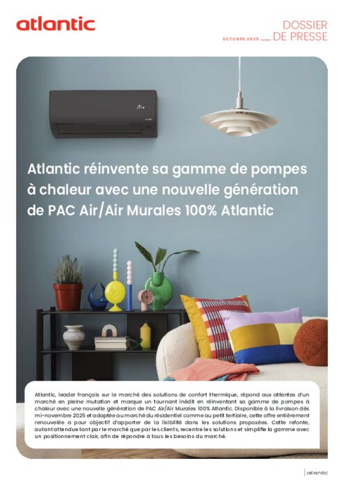 Atlantic, leader français sur le marché des solutions de confort thermique, répond aux attentes d’un marché en pleine mutation et marque un tournant inédit en réinventant sa gamme de pompes à chaleur avec une nouvelle génération de PAC Air/Air Murales 100% Atlantic. Disponible à la livraison dès mi-novembre 2025 et adaptée au marché du résidentiel comme au petit tertiaire, cette offre entièrement renouvelée a pour objectif d’apporter de la lisibilité dans les solutions proposées. Cette refonte, autant attendue tant par le marché que par les clients, recentre les solutions et simplifie la gamme avec un positionnement clair, afin de répondre à tous les besoins du marché.
