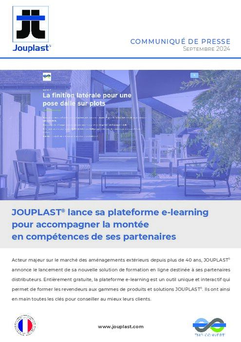 Acteur majeur sur le marché des aménagements extérieurs depuis plus de 40 ans, JOUPLAST annonce le lancement de sa nouvelle solution de formation en ligne destinée à ses partenaires distributeurs. Entièrement gratuite, la plateforme e-learning est un outil unique et interactif qui permet de former les revendeurs aux gammes de produits et solutions JOUPLAST. Ils ont ainsi en main toutes les clés pour conseiller au mieux leurs clients.
