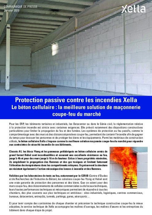 Les systèmes de protection au feu passifs, comme le compartimentage avec des murs et des cloisons séparatives coupe-feu, permettent de contenir l’incendie afin de gagner du temps pour évacuer les personnes et de protéger les biens et les équipements. Parmi les matériaux de construction utilisés, le béton cellulaire Xella s’impose comme la meilleure solution maçonnée coupe-feu du marché pour répondre aux contraintes de sécurité incendie de ces bâtiments.