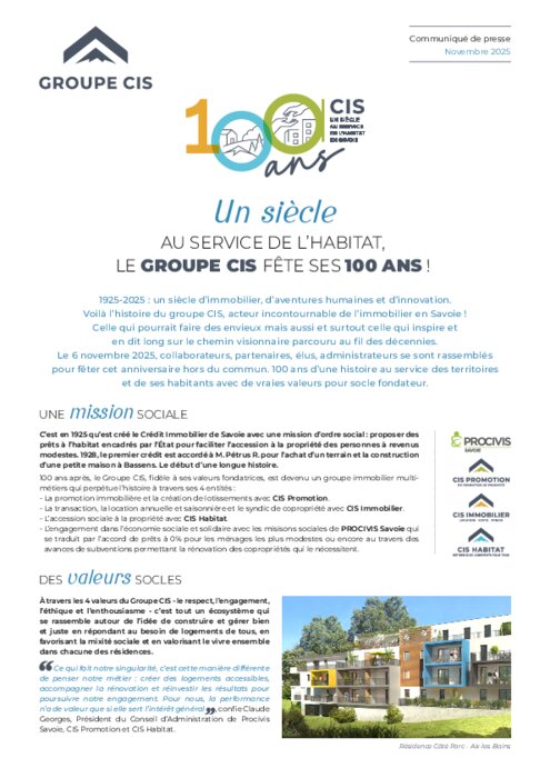 Un siècle au service de l'habitat en Savoie, un siècle d'immobilier, d'aventures humaines et d'innovation ! C'est en présence de M. Thierry Repentin, maire de Chambéry et président de Grand Chambéry, de M. Yannick Borde et de M. Guillaume Macher, respectivement président et directeur général du réseau national Procivis que cette cérémonie s'est déroulée.