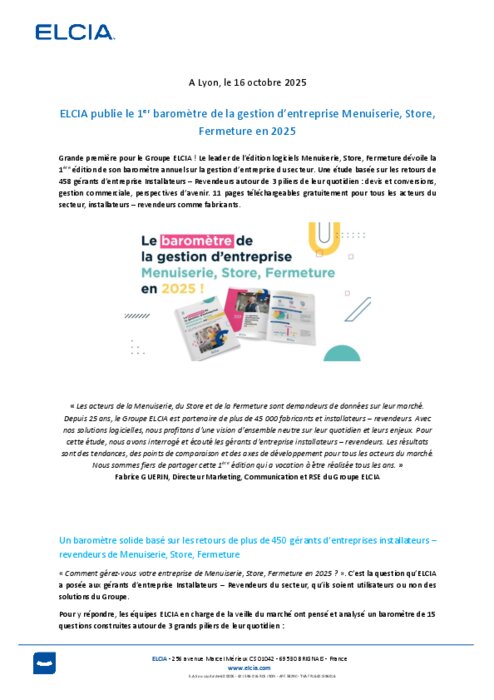 Le Groupe ELCIA dévoile le premier baromètre de la gestion d'entreprise Menuiserie, Store et Fermeture