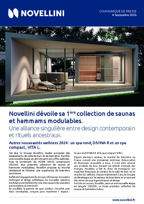 Cet été, le Groupe Novellini, franchit une nouvelle étape en enrichissant son offre wellness. Avec le lancement de HOME OASIS, comprenant CELSIUS, leur première collection de saunas et hammams modulables, Novellini propose au marché résidentiel et hôtelier une expérience de bien-être sans limite.