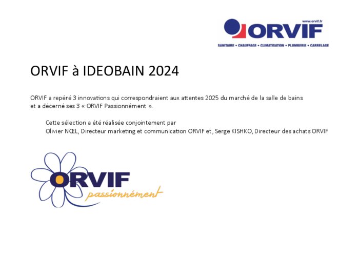 Orvif a repéré 3 innovations qui correspondraient aux attentes 2025 du marché de la salle de bains et a décerné ses trois « Orvif Passionnément ». Cette sélection a été réalisée conjointement par Olivier Noel, directeur marketing et communication et Serge Kishko, directeur des achats.