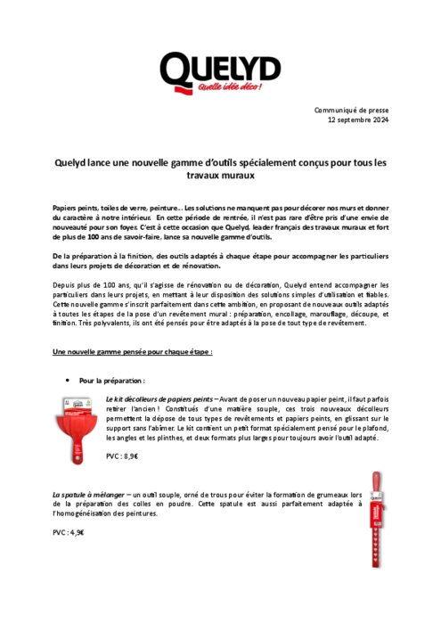 Papiers peints, toiles de verre, peinture... Les solutions ne manquent pas pour décorer nos murs et donner du caractère à notre intérieur. En cette période de rentrée, il n’est pas rare d’être pris d’une envie de nouveauté pour son foyer. C’est à cette occasion que Quelyd, leader français des travaux muraux et fort de plus de 100 ans de savoir-faire, lance sa nouvelle gamme d’outils.