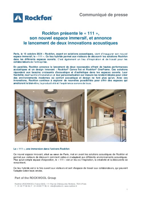 Rockfon, expert en solutions acoustiques, vient d’inaugurer son nouvel espace immersif, le « 111 ». Ce lieu hybride permet aux visiteurs de découvrir les solutions Rockfon dans les différents espaces ouverts. C’est également un lieu d’inspiration et de travail pour les collaborateurs de l’entreprise.