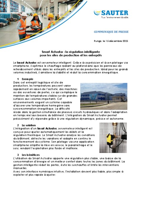 Le Smart Actuator est servomoteur intelligent. Grâce à sa précision et à son pilotage via smartphone, il optimise le chauffage radiant au plafond ainsi que les panneaux de refroidissement utilisés dans les entrepôts et les sites de production. Idéal pour les grands volumes industriels, il améliore la stabilité et réduit la consommation énergétique.