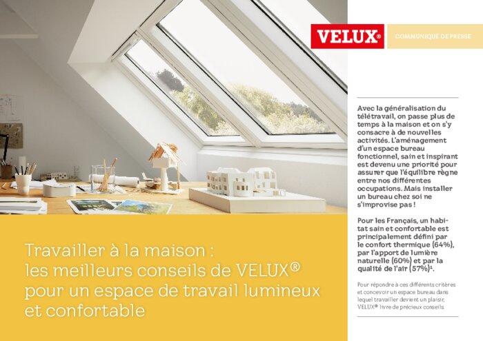 Pour les Français, un habitat sain et confortable est principalement défini par le confort thermique (64%), par l'apport de lumière naturelle (60%) et par la qualité de l'air (57%). Pour répondre à ces différents critères et concevoir un espace bureau dans lequel travailler devient un plaisir, VELUX livre de précieux conseils.