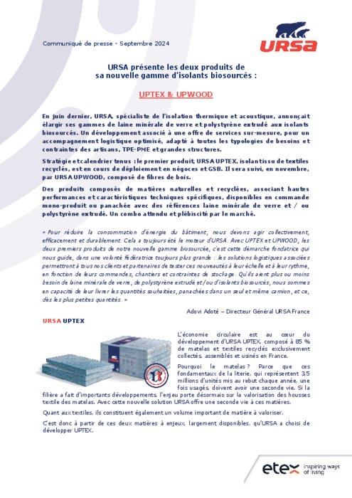 En juin dernier, URSA, spécialiste de l’isolation thermique et acoustique, annonçait élargir ses gammes de laine minérale de verre et polystyrène extrudé aux isolants biosourcés. Un développement associé à une offre de services sur-mesure, pour un accompagnement logistique optimisé, adapté à toutes les typologies de besoins et contraintes des artisans, TPE-PME et grandes structures.