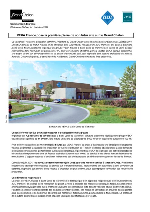 pierre de la future plateforme logistique du groupe VEKA France à Saint-Loup-de-Varennes en Saône-et-Loire. Leader