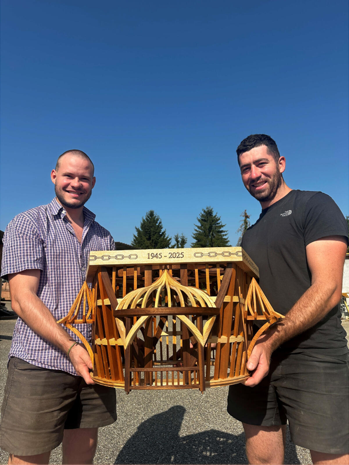 De jeunes Compagnons venus de toute la France ont réalisé un chef-d’œuvre monumental de 4 mètres de hauteur, en hommage à l’histoire des Compagnons Charpentiers. Ils se sont inspirés des techniques traditionnelles tout en y intégrant des outils modernes.